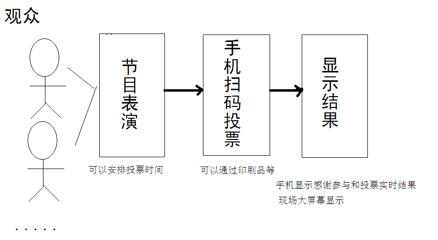 客户需要二维码识别实现手机扫码投票,年会内部活动使用,增加新意。主要用来对表演节目进行手机扫码投票,同时大屏幕实时获得投票结果。大概人员叁佰多,节目15个左右。